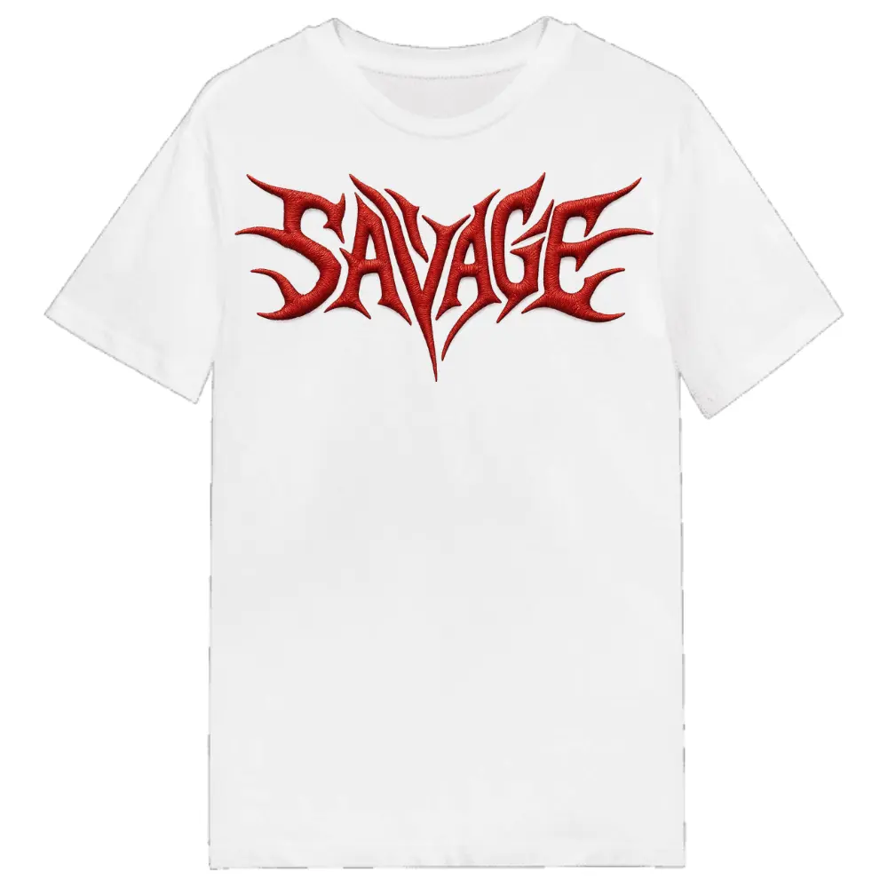 Descubre la playera en colores blanco y negro que combina con cualquier outfit. Su estampado al frente con la palabra ‘Savage’ en color rojo destaca con la tecnología de impresión DTF, ofreciendo un diseño impactante que parece bisrado.